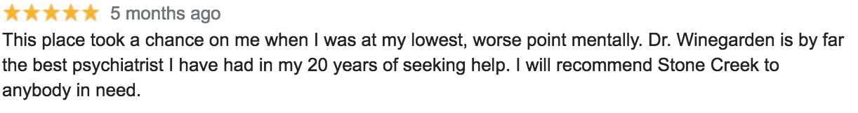 Stone Creek Psychiatry is a private outpatient mental health clinic located in Chanhassen, and is made up of independent psychiatrists, clinical nurse specialists, physician assistants and nurse practitioners. Providers at Stone Creek Psychiatry conduct initial diagnostic assessments, prescribe and monitor medications, and help you make informed decisions regarding your mental health.